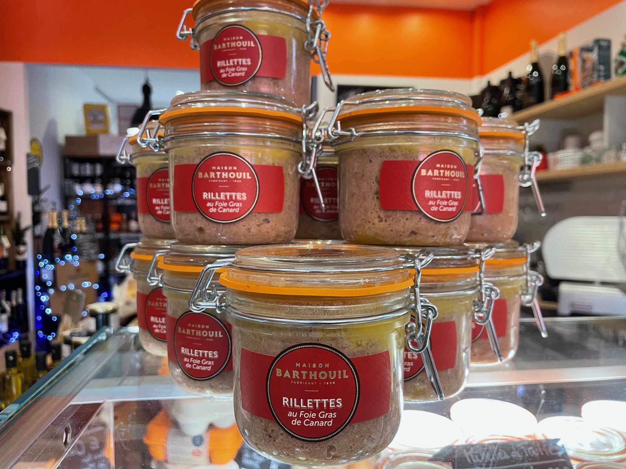 - Rillettes au Foie Gras de Canard, Maison Barthouil (Landes) 190g – à déguster telles quelles sur du pain frais,