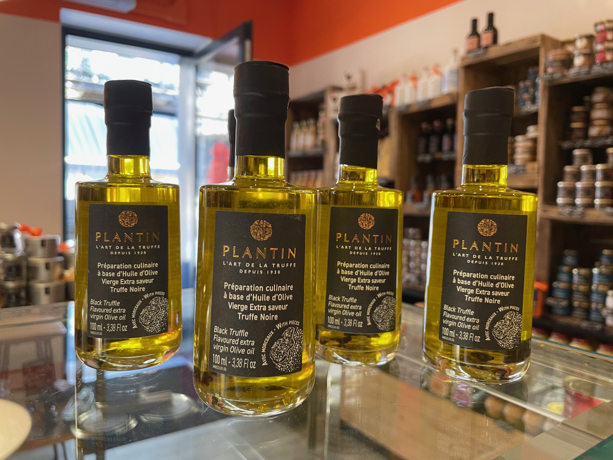 Ingrédients : Huile d’olive vierge extra 98.8%, arôme 1.1%, truffes noires lyophilisées (Tuber melanosporum).
